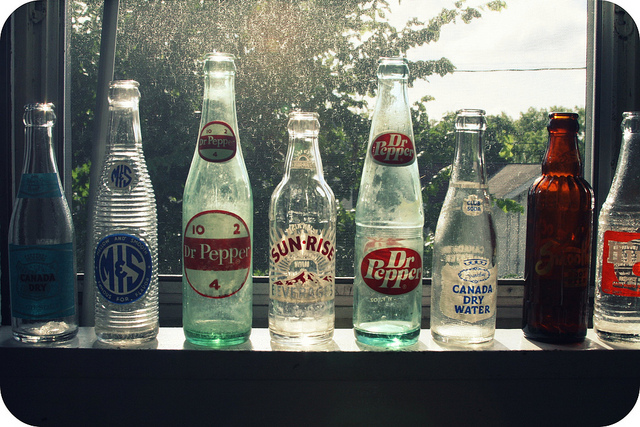 A slew of vintage soda bottles, 25-50 cents each, Family Pathways Thrift Store, Pine City, Minnesota