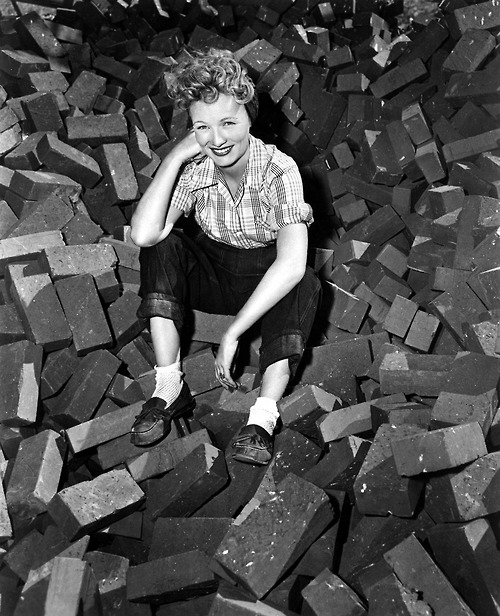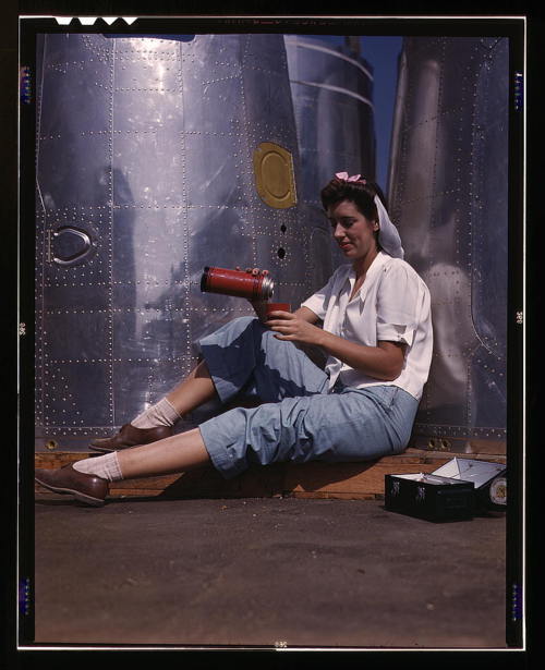 Although my tastes are inherently girly, with a capital G, lately I’ve been drawn to the practical fashions of WWII-era factory gals. You know, outfits a “Rosie the Riveter” type of gal would’ve worn. So when I read about the passing of Geraldine Doyle, whose face served as the model for the iconic “We Can Do It” poster, I figured today seems like a good time to dig up some inspiring images from that time.