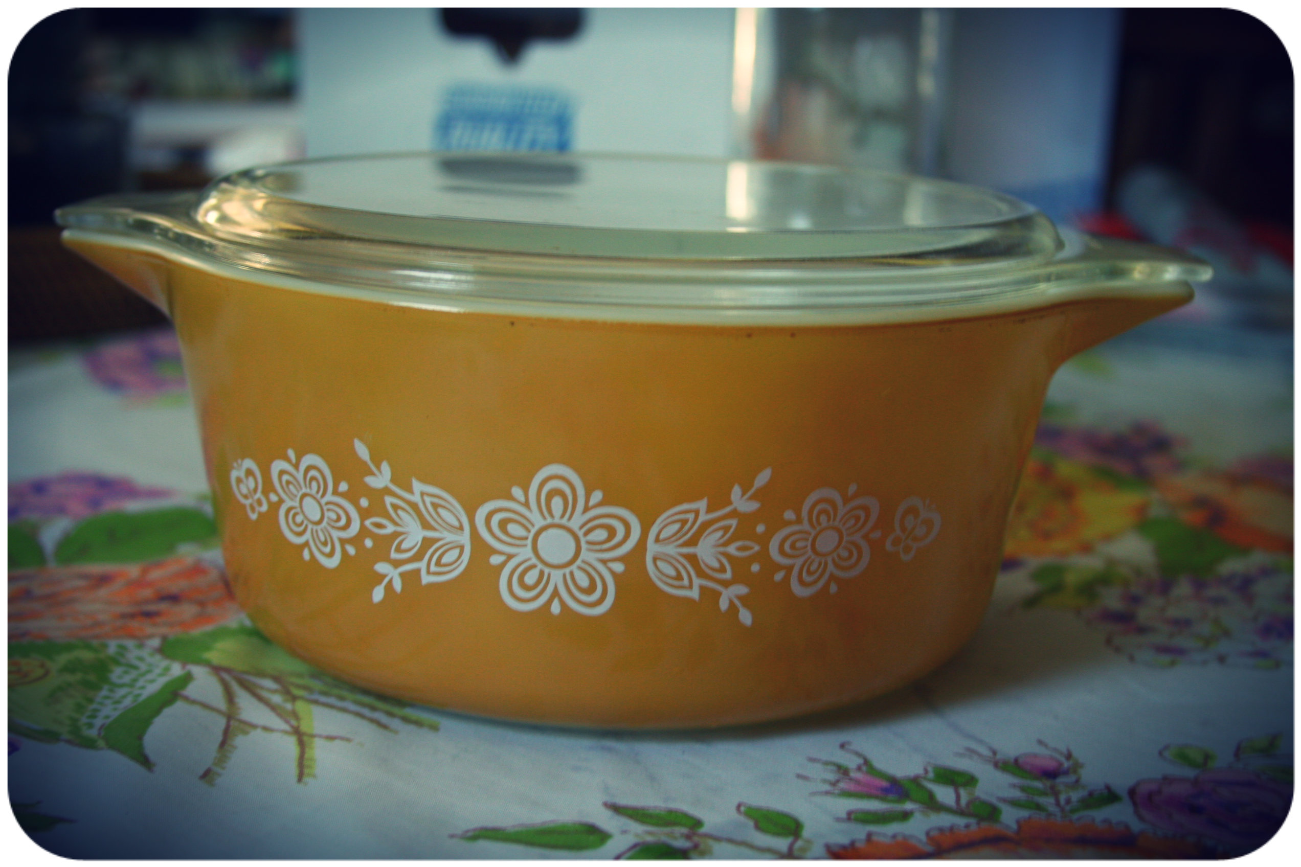 A 2.5-quart casserole addition to my collection of “Butterfly Gold” Pyrex…nice.