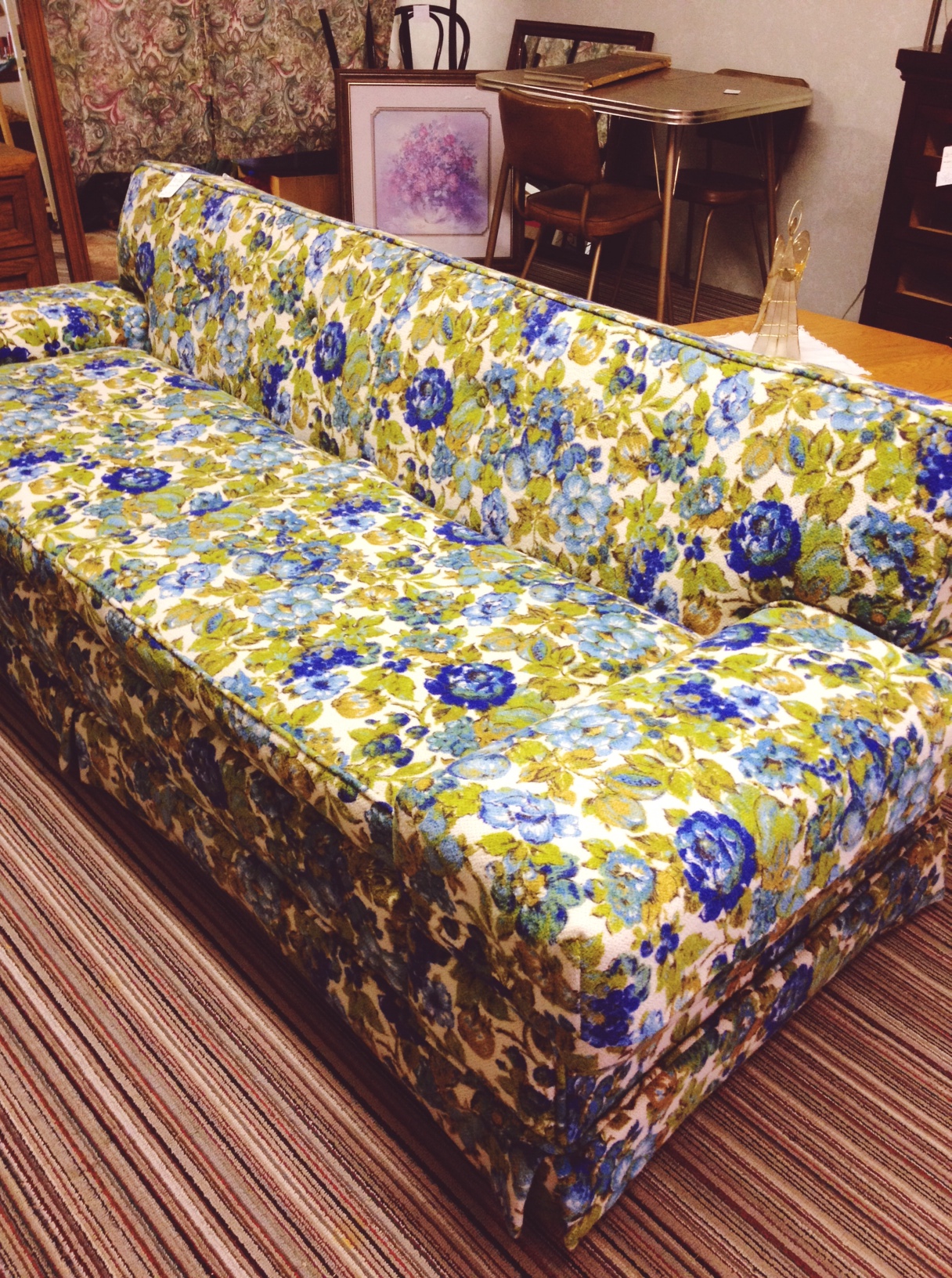 Set in a kind of squat building, both Meggie and I were underwhelmed by the random, sparse, disorganized assortment of merchandise in this two-room store. This couch was really cute though!