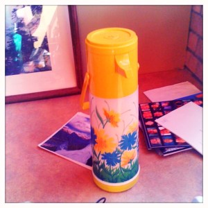 The filtered water at my office is all the way upstairs. Which makes this handy carafe my desk-top lifesaver. Don’t you just love yellow and blue together??? I think this was $2. Maybe $3?
