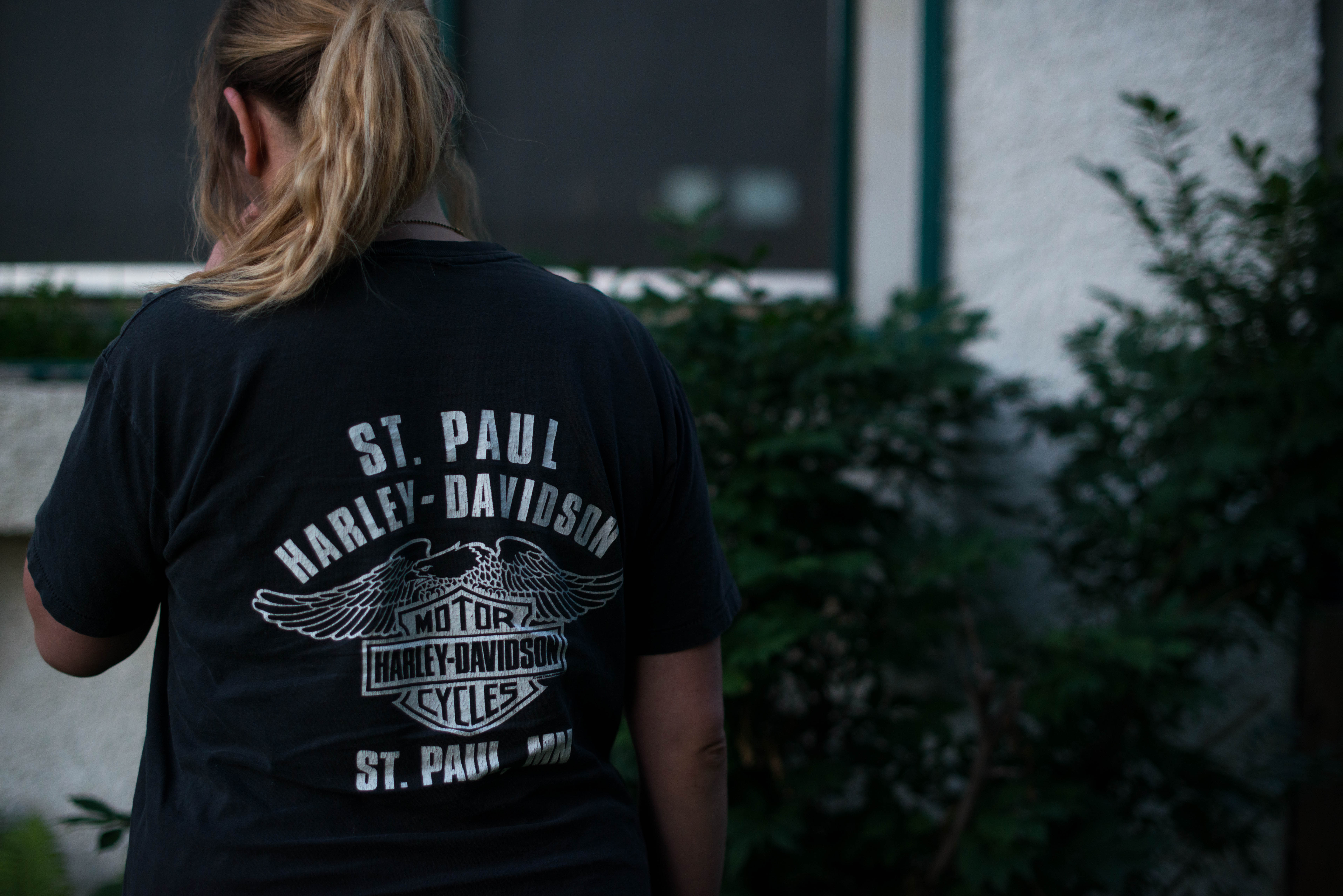 high plains thrifter // harley teeDSC_6733Except for the eagle, it’s pretty plain, but it’s also hella soft, and I find myself putting it on after work before I head out to do my weeding, watering or walking of the dog. All lame activities compared to the two-wheeled adventures its former owner probably had whilst wearing it, but hey…at least it’s not in the dump, right?