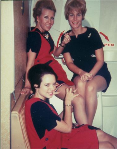 A special somebody has gotten me looking for all things vintage and stewardess-y. I’ve found a slew of rad vintage advertisements, but this candid snap of some circa 1970s air hostesses relaxing on board got my attention.