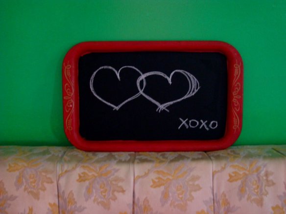 How adorable are these chalkboards, made from thrifted TV trays? I love Lisa’s idea of making them fridge-ready by gluing magnets to the back. So smart!