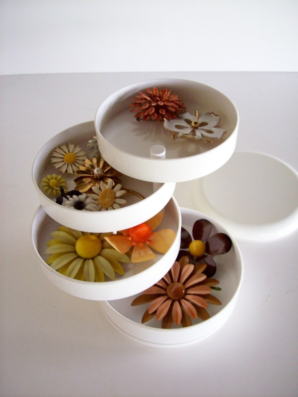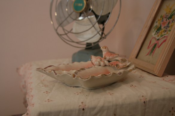 So, where do you keep your girlie treasures? A vintage bowl maybe? A jewelry box, necklace tree, train case or serving dish?
