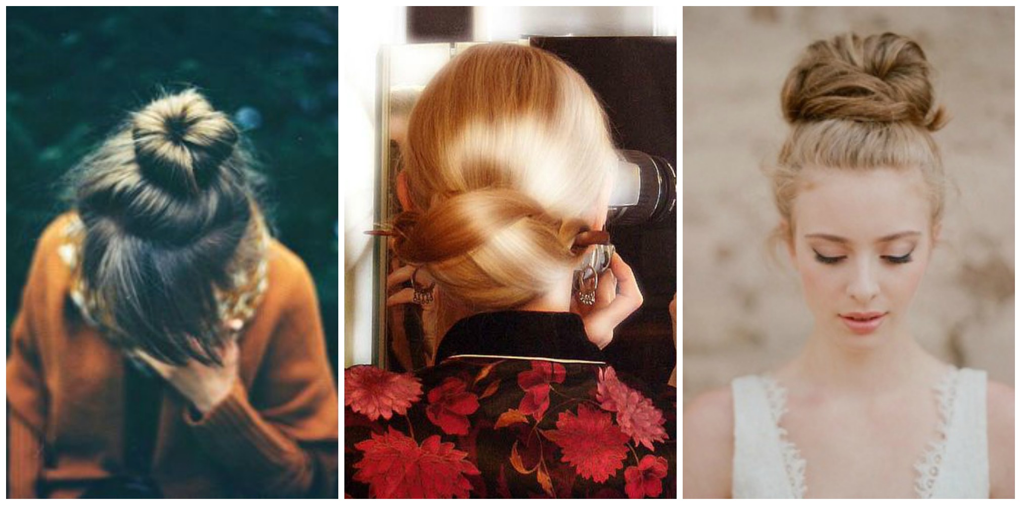 The majority of examples I was drawn to places the doughnut at the back of the head, versus plopped awkwardly on top. They’re a little retro and a little messy, just like I like ’em.