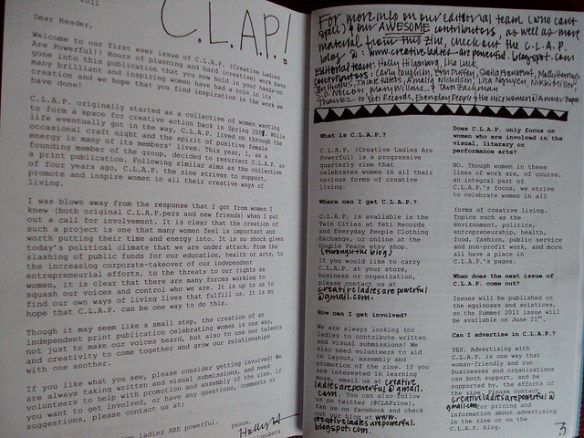 Holly was kind enough to sit down and share a bit about history and mission of C.L.A.P. the zine…