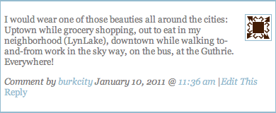 Click here to see more pics of Spilled Milk Factory’s lovely creations, including wristlets, totes, cozy hoods, fabric necklaces and of course, gorgeous beaded jewelry.