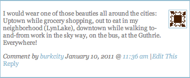 Lauren: I love Digger’s for old sweaters and I always find something handy at a Unique Thrift ( my favorite one’s on Rice St.) Grand Addictions in St.Paul is my favorite place to find vintage buttons. As a Duluth native, I like to hit up thrifts there when I go back to visit.