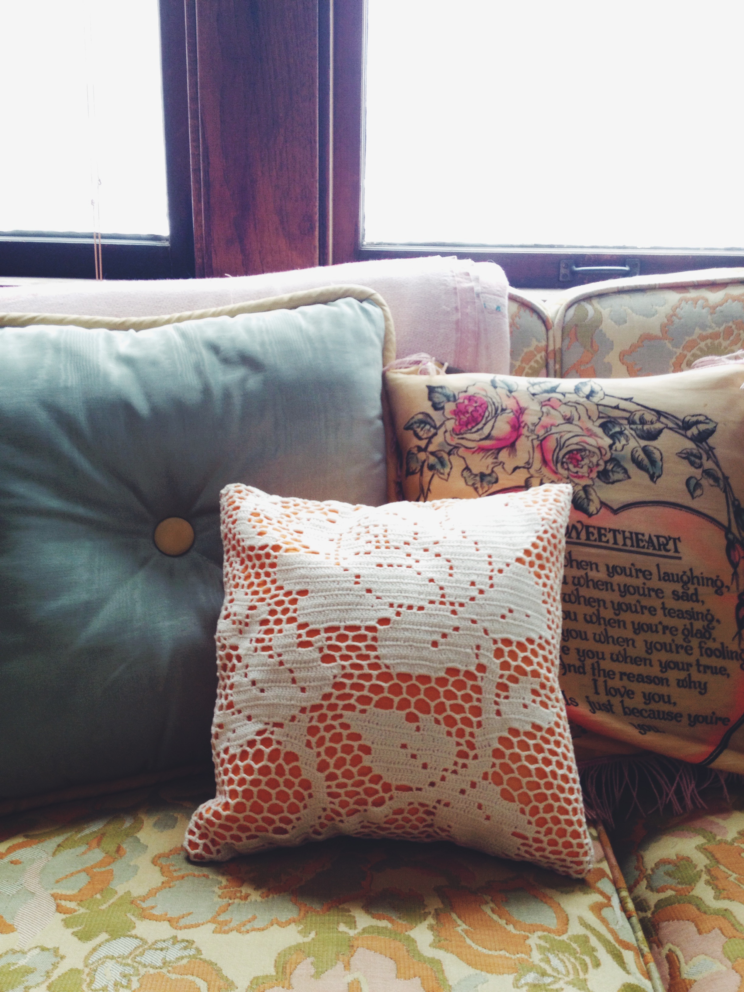 ♥ Two vintage loaf pans (50 cents a piece), a souvenir tile for a most beloved state (25 cents), an optimistic mug (25 cents) I’m saving to give as a gift and the sweet crate that holds it all ($3), are all from One More Time.