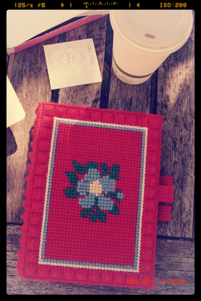 I I keep my jewelry in this vintage glass goblet-like thing (it looks like collectible Blenko, but I don’t think it is). William keeps his manly accessories in a small Norwegian Emalox bowl (we have several of these in different colors and sizes).
